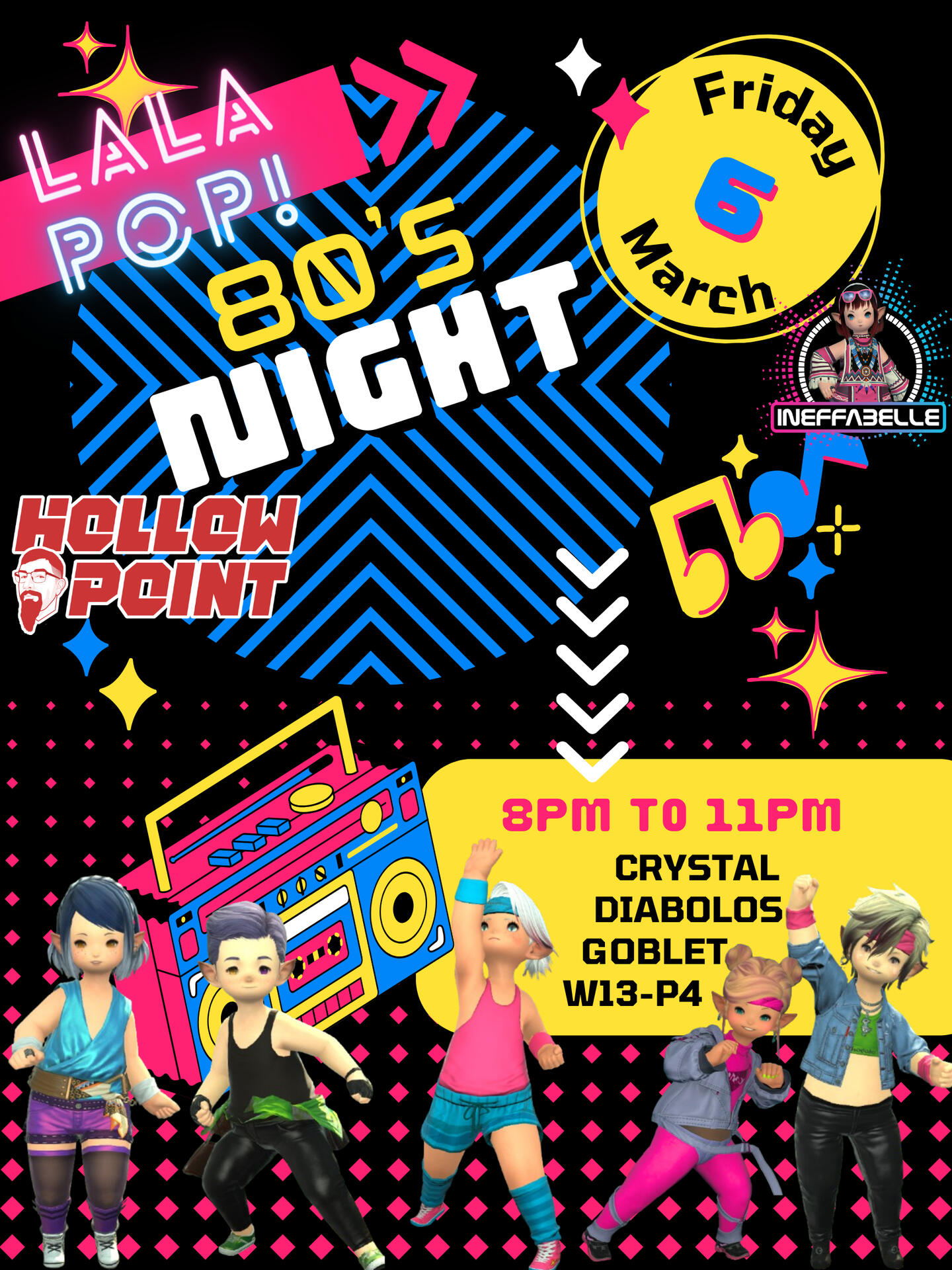 LALAPOP! is a lalafell group primarily focused on clubbing and partying together as lalas in FFXIV! All are welcome in our Discord server and at our events, though the CWLS is for lalas only.